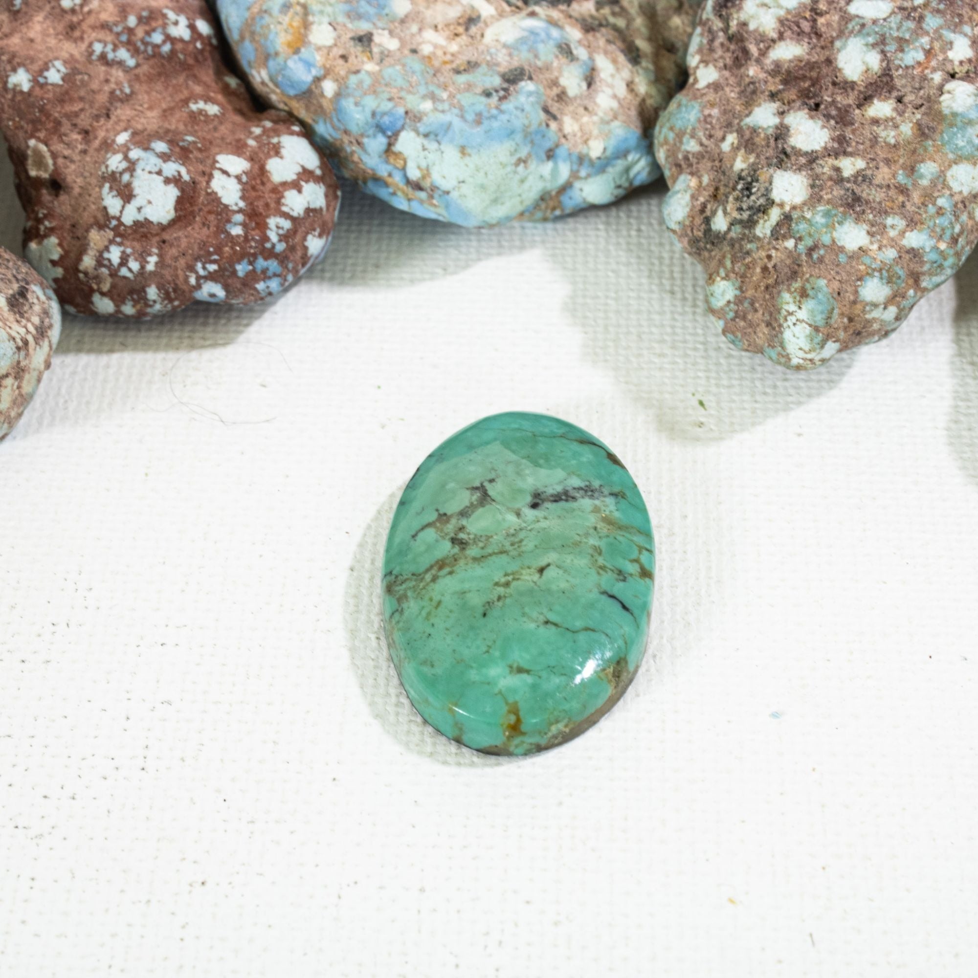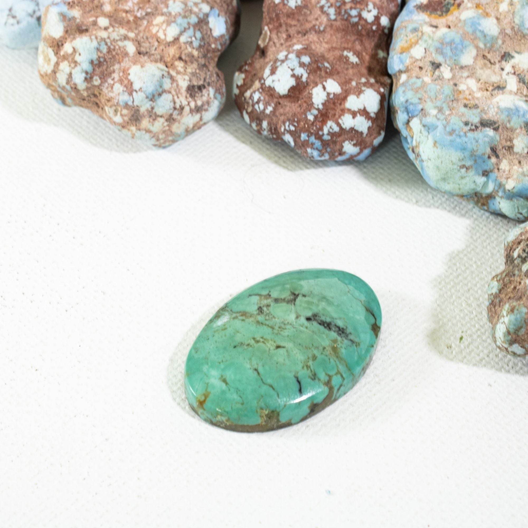 Patagonia Turquoise is found in southeast Arizona and has become very popular and in demand. The color is spectacular and will range from blue to green and a range of hues in between. The matrix is often a pleasing warm and complimentary caramel color. This cab has the fabulous green-blue Patagonia color and i ticked with the classic caramel Patagonia matrix.