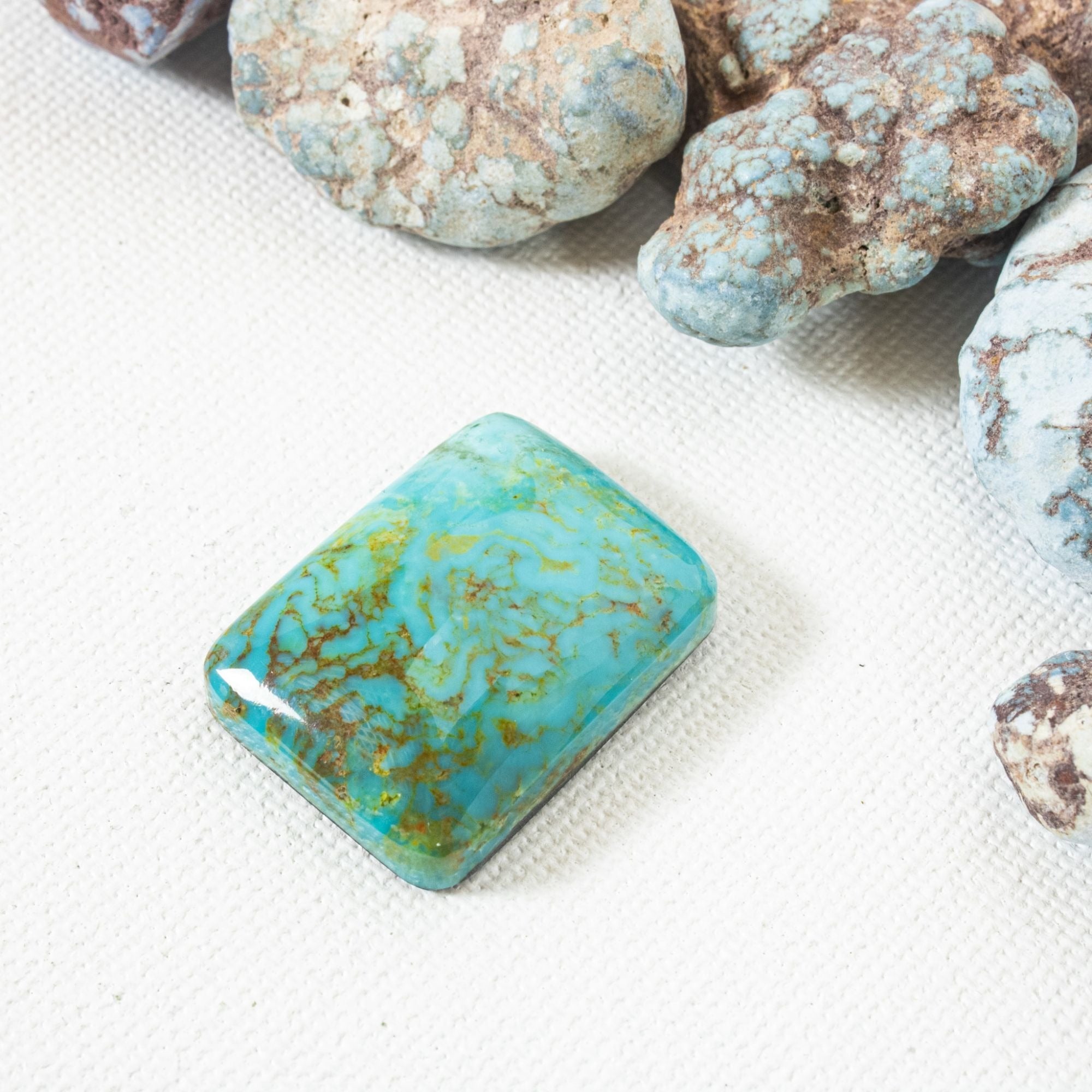 Patagonia Turquoise is found in southeast Arizona and has become very popular and in demand. The color is spectacular and will range from blue to green and a range of hues in between. The matrix is often a pleasing warm and complimentary caramel color. This single cab has a great blue green color mixed with the classic caramel Patagonia matrix.