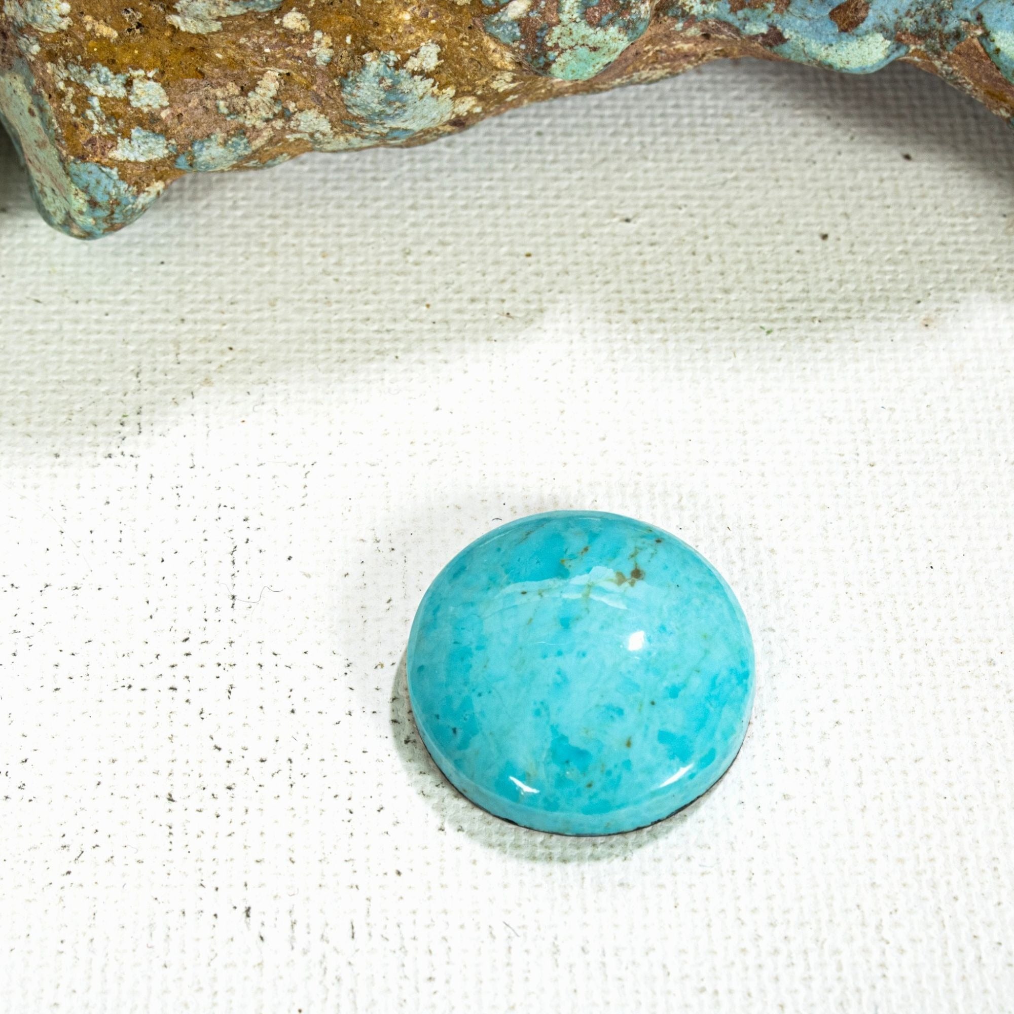 Patagonia Turquoise is found in southeast Arizona and has become very popular and in demand. The color is spectacular and will range from blue to green and a range of hues in between. The matrix is often a pleasing warm and complimentary caramel color. This Patagonia cab shows a very nice classic blue color.