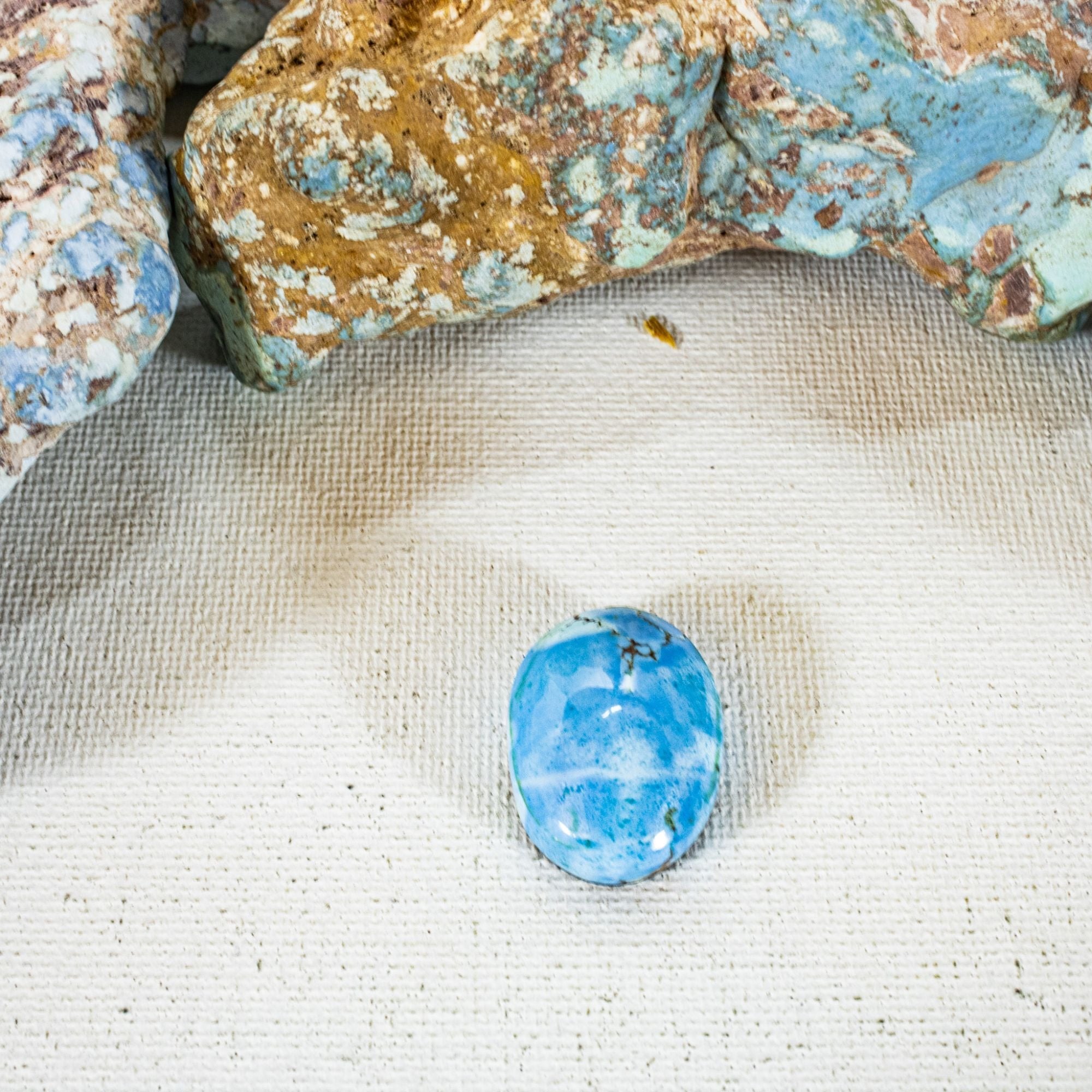 Golden Hill turquoise was first introduced to the U.S. around 2014. Mined in Kazakhstan, and only in the winter months, Golden Hill has become sought after and considered rare. It is a natural and chemically pure turquoise with colors that range from light blue to deep lavender. This is a beautiful Golden Hill cab with a dominant presentation of the classic Golden Hill blue and lavender that it was originally sought after.