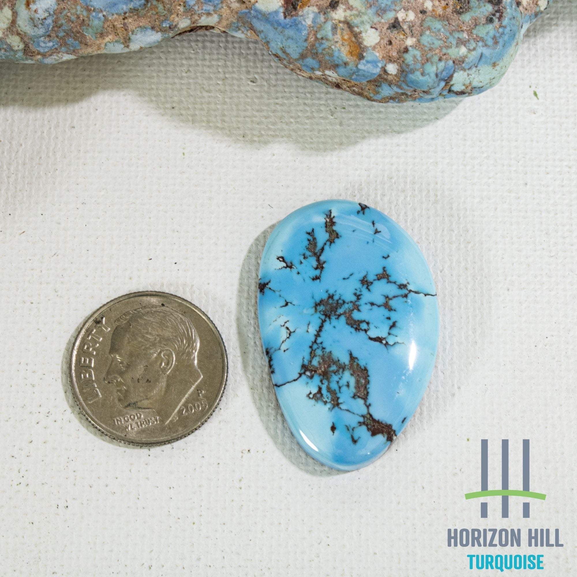 Golden Hill turquoise was first introduced to the U.S. around 2014. Mined in Kazakhstan, and only in the winter months, Golden Hill has become sought after and considered rare. It is a natural and chemically pure turquoise with colors that range from light blue to deep lavender. This is a beautiful presentation of Golden Hill lavender and blue color ticked with the classic caramel matrix.