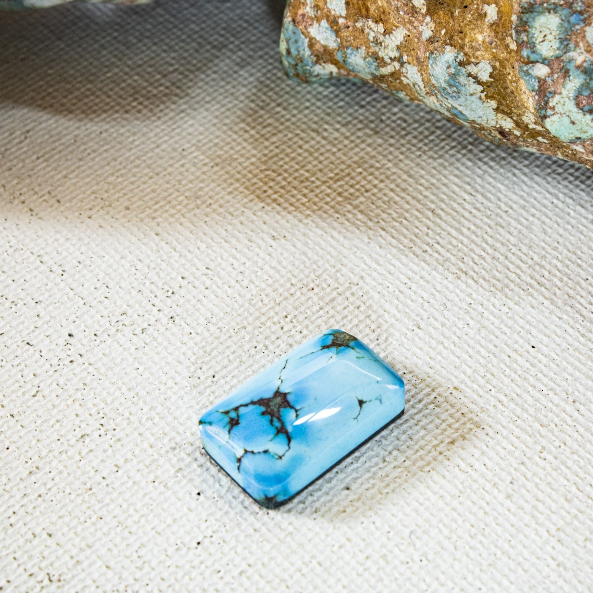 Golden Hill turquoise was first introduced to the U.S. around 2014. Mined in Kazakhstan, and only in the winter months, Golden Hill has become sought after and considered rare. It is a natural and chemically pure turquoise with colors that range from light blue to deep lavender. This nice small rectangle has all of the classic Golden Hill color with a caramel matrix.