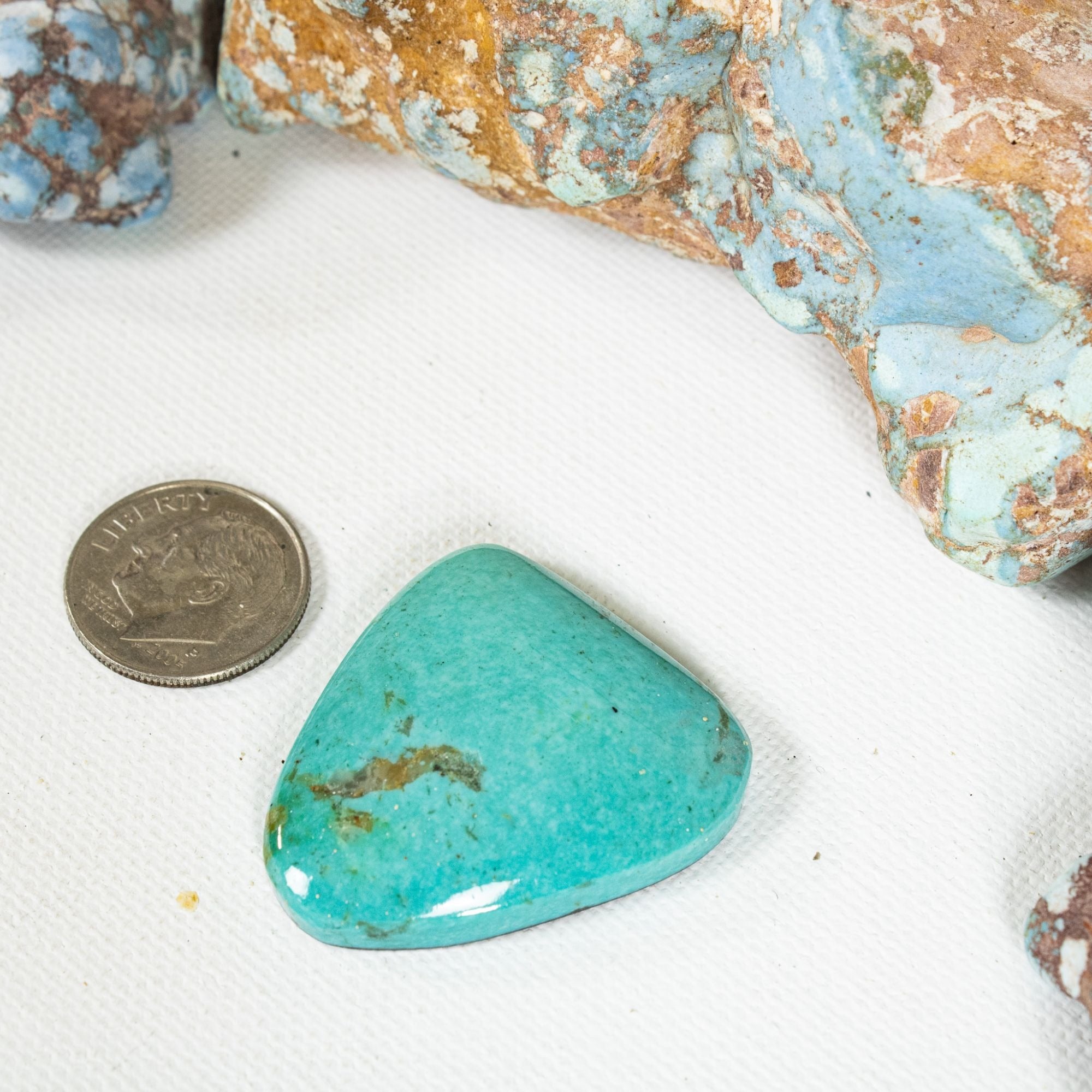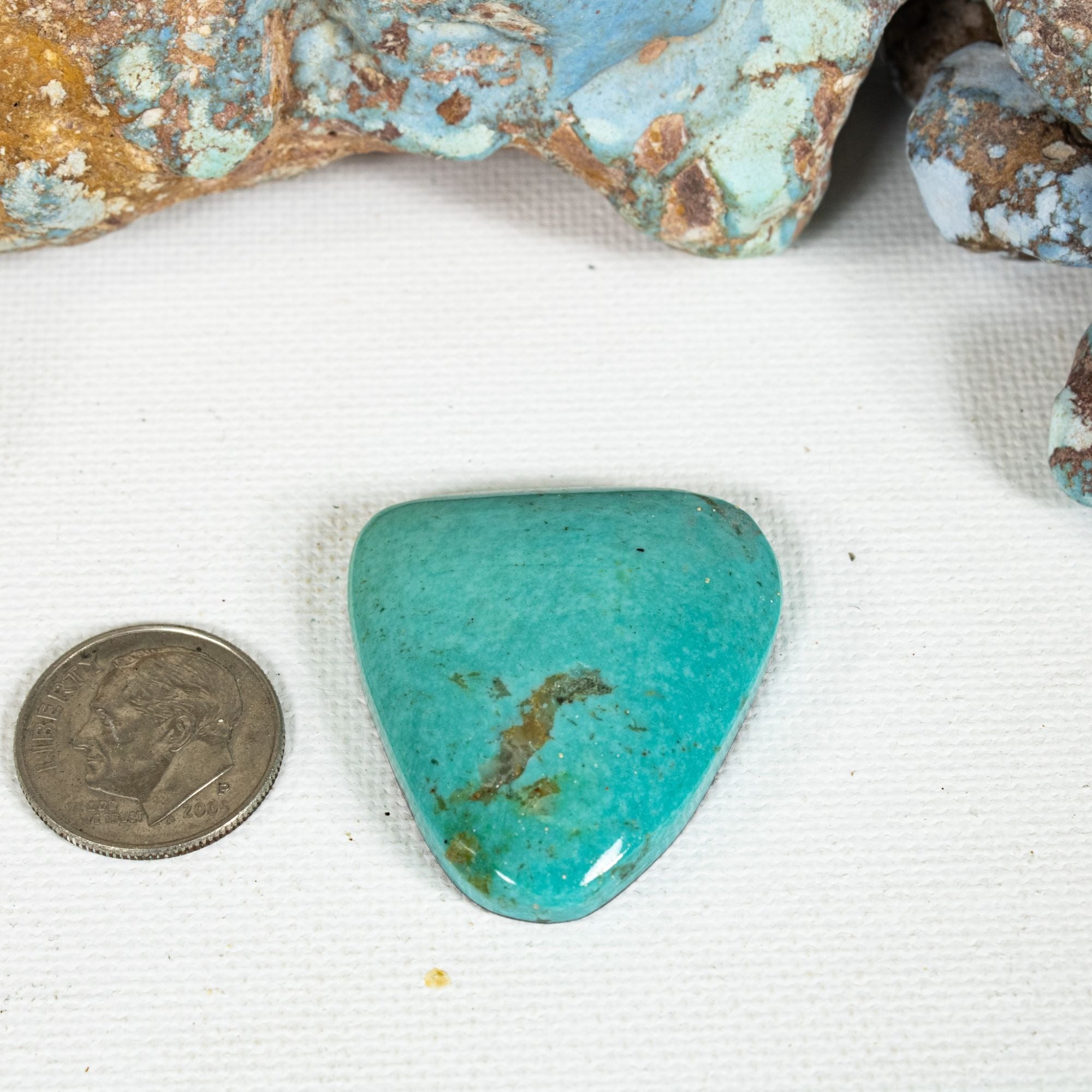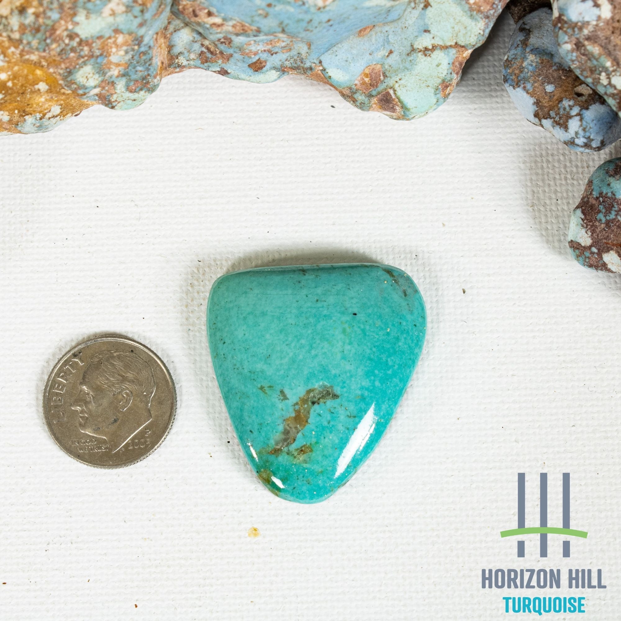 Pilot Mountain Turquoise comes from a series of mines found in western Nevada at the southern end of the Pilot Mountains. The intense colors are highlighted by a matrix of light to dark brown limonite mottled patterns. This single cabochon has a beautiful blue / green color and a bolt of golden brown matrix. Very pretty color.